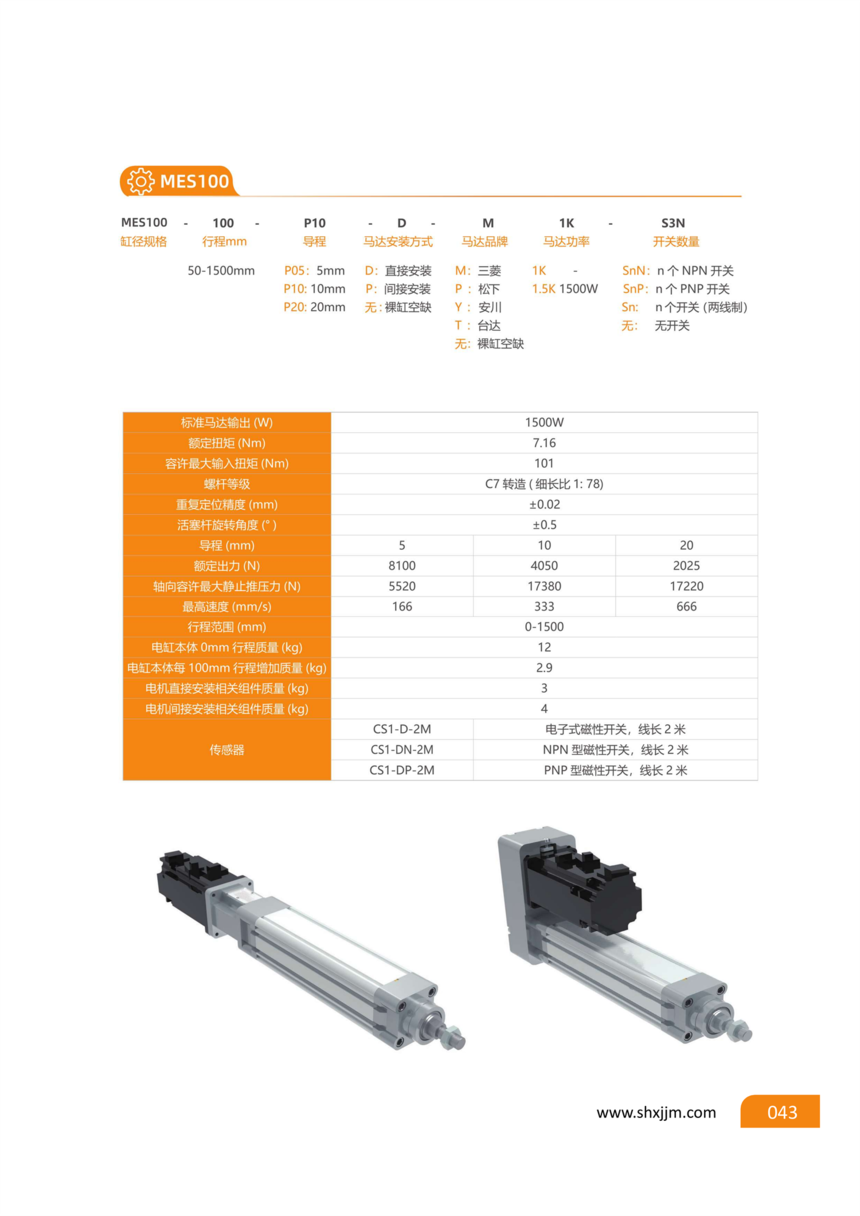 MES100标准电缸 配1000W伺服